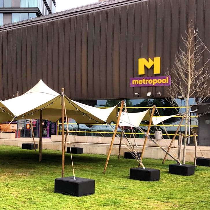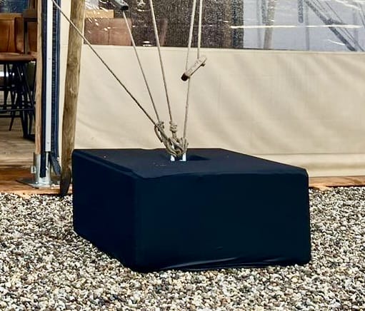 T.b.v. verankering tenten met betonballast, 80x80x40cm. Worden standaard geleverd met stijlvolle, zwarte hoes.