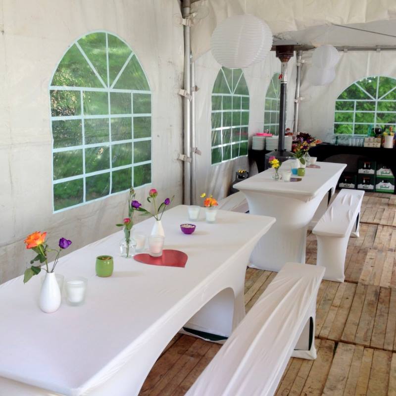 Huur biertafelset met strakke zwarte stretchrokken