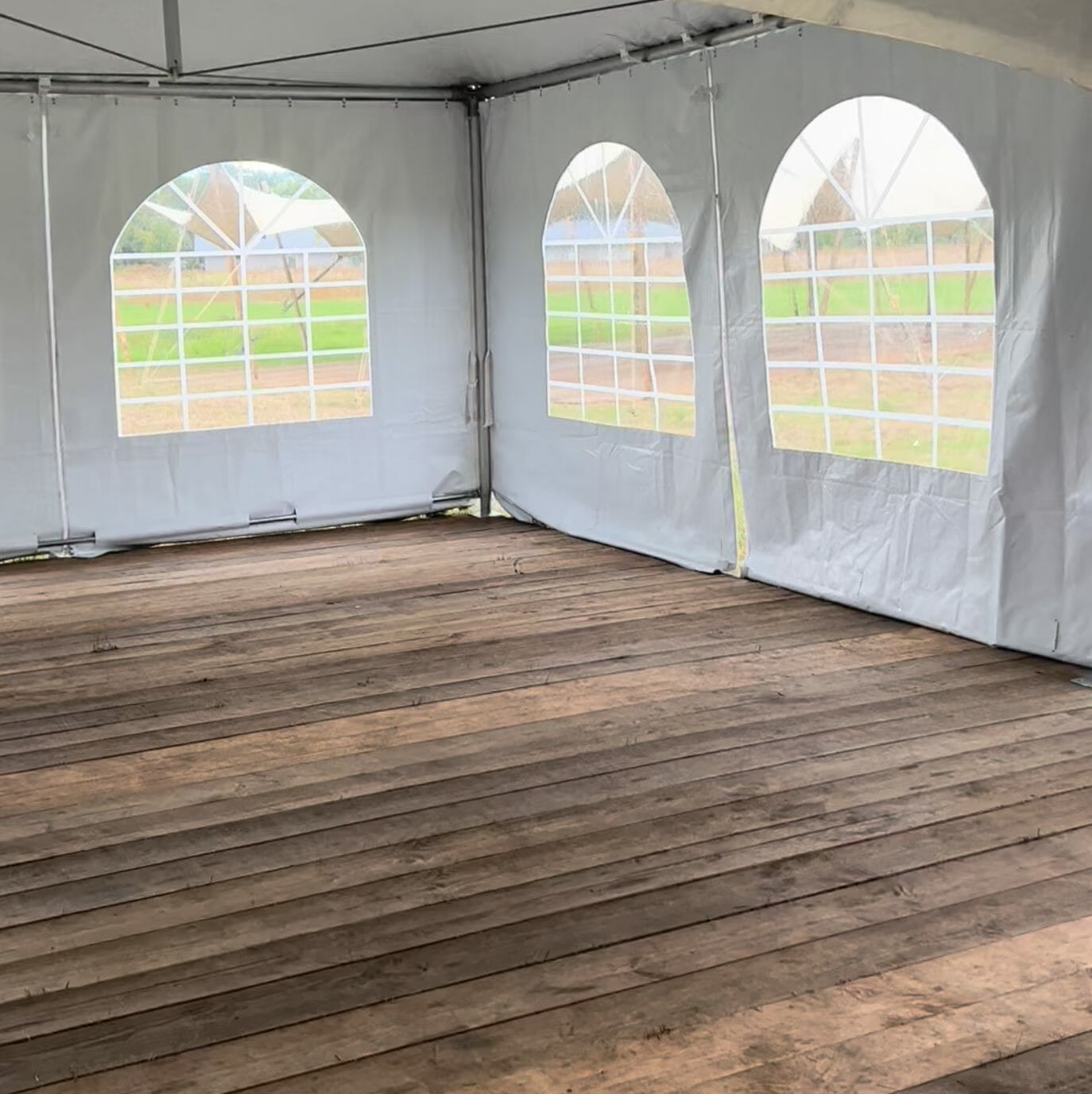 Passende vloer voor een 6x6m pagodetent, gemaakt van onze mooie douglas vloerdelen, die verstek gelegd worden zodat een stevige vloer ontstaat. Enigszins vlakke ondergrond vereist, kleine hoogteverschillen kunnen worden opgevangen.