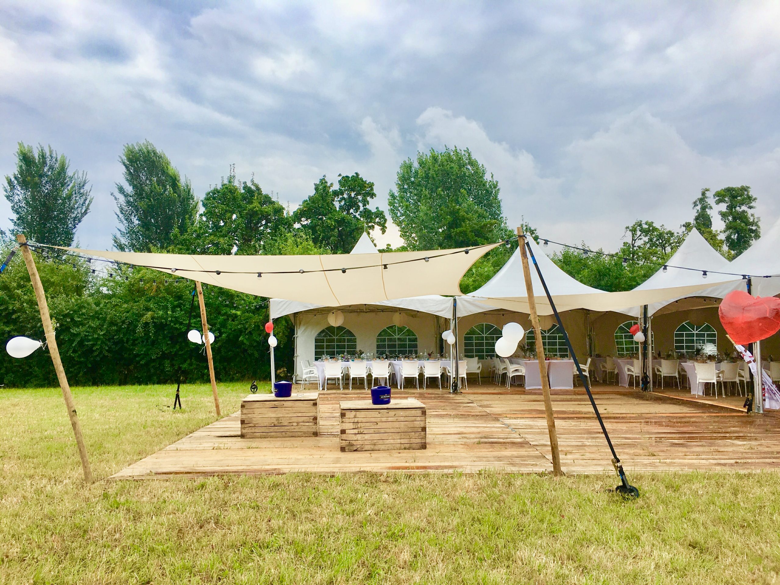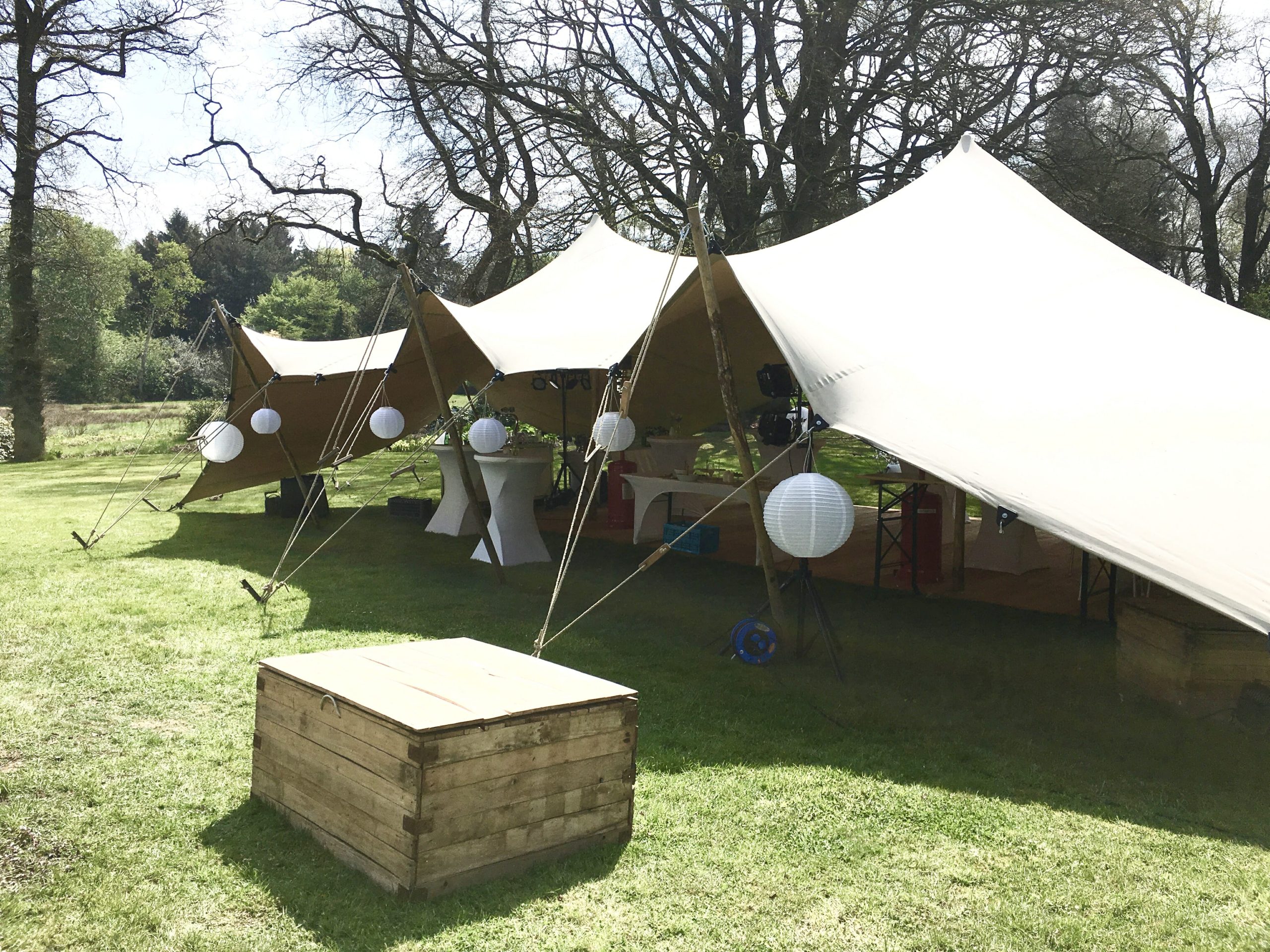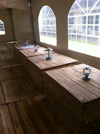 Hardhouten zitblokken, aan te kleden met kussens, schapenvachten of dekentjes: goed te gebruiken om eventjes uit te rusten na gedanst te hebben, of als zitelementen in een mooi gestyled hoekje van je feest.